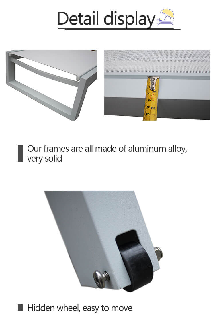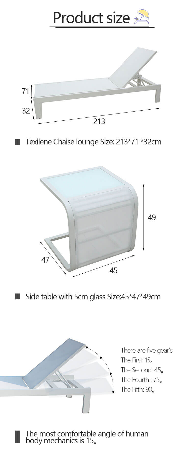 चेज़ लाउंज अतिरिक्त आराम और विश्राम के लिए नरम गद्देदार कुशन के साथ आता है। विशाल और गहरी सीट इस झुकनेवाला पर पूरी तरह से लेटने के लिए सबसे अधिक ऊंचाई वाले लोगों को फिट होती है। आपके लिए चुनने के लिए चेज़ कुर्सी का पिछला हिस्सा समायोज्य है, आप आसानी से सही कोण पर समायोजित कर सकते हैं जो अनुमति देता है आप बैठ सकते हैं, पीछे झुक सकते हैं या पूरी तरह से लेट सकते हैं। आउटडोर सन लाउंज चेयर को कलात्मक शैली के साथ डिज़ाइन किया गया है, यह आपके बाहरी स्थान के लिए एक आकर्षक जोड़ होगा।